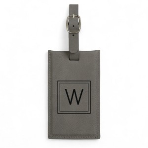 Elevate your travel experience with the Personalization Mall Leatherette Luggage Tag. Crafted from premium bi-cast split leather, this stylish accessory allows you to engrave any initial on the front, adding a personal touch to your belongings. The adjustable buckle ensures it easily attaches to your luggage, providing instant identification and peace of mind. It features a clear window to display your contact information, making it both functional and fashionable. Measuring 4.5" L x 2.5" W x .75" H and weighing just .2 lb., it is the perfect blend of elegance and utility for the discerning traveler.