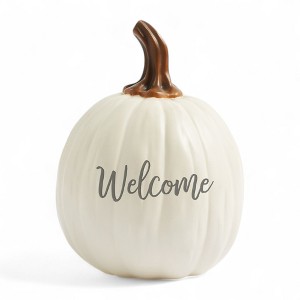 Decorate your home in festive Fall or Halloween style with the Fall Seasonally Script Pumpkins. Beautifully crafted of resinwithamazing artistic detail and realistic pumpkin features; some variations may occur.