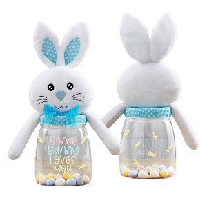 Our Some Bunny Loves You Personalized Easter Bunny Candy Jar makes a cute Easter gift for any little one! The adorable plush, velboa bunny is accented by a stylish polka dot pattern.