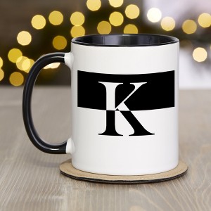 Add some personalized style to your morning cup of coffee with the Squared Initial Coffee Mug. This 11oz mug features your first or last initial with a black handle and interior. Buy one for the whole family so each person has their own mug, or gift to friends for birthdays, weddings, or housewarmings.