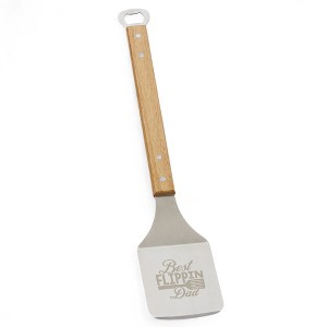 The Best Flippin Dad Personalized Stainless Steel Spatula gives the outdoor chef a hand and all the credit, making a great gift for Father's Day, birthdays and more! The large surface spatula made from premium stainless steel, makes flipping meat easy. It comes with a handy built-in bottle opener so you can crack open a beverage while flipping and serving your dishes.
