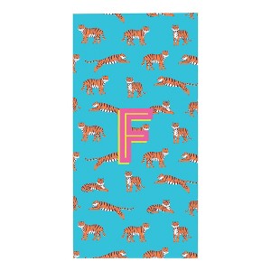 Unleash your inner spirit animal with the Personalization Mall Tiger Print Initial Beach Towel. This vibrant towel is designed for those who aren’t afraid to stand out. With a striking tiger pattern, it adds a splash of personality to your beach day essentials. The towel offers a unique blend of polyester and cotton velour, ensuring softness and durability. Its generous size of 30" W x 60" L provides comfort and ample space to lounge. Fully printed on the front with your chosen initial, the reverse side remains classic white for added versatility. Effortlessly machine washable, it's as easy to care for as it is eye-catching. Make it uniquely yours and redefine wild in style.