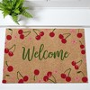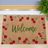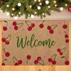 Welcome your guests in style with the charming Welcome Cherry Doormat. This delightful accent piece is designed to mimic the classic look of coir but is crafted from a high-quality synthetic material, ensuring durability without the shedding. Its vibrant cherry design, created using state-of-the-art dye-print technology, adds a touch of whimsy and personality to any entryway.