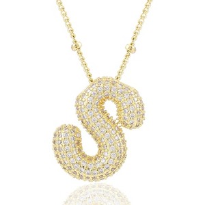 Personalized Chunky Initial Necklace: 14K Gold Plated Bubble Balloon Charm Pendant for Women