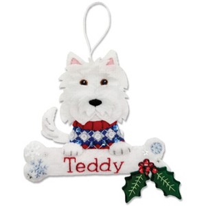 Craft a keepsake that celebrates your furry friend with the Personalized Terrier Felt Ornament Kit. Featuring a playful white terrier in a cozy sweater, this adorable ornament includes a festive bone-shaped nameplate that you can customize with your pet’s name. With detailed stitching, sparkling embellishments, and seasonal charm, it’s the perfect handmade gift for dog lovers.
