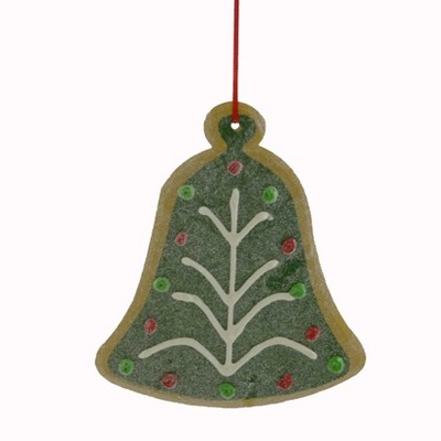 - This Iced Cookie Glittered Bell ornament is perfect for hanging on your Christmas tree, wreath, or garland. Its flat-back design ensures it rests easily on any surface, and it makes a wonderful addition to holiday gift baskets or as a stocking stuffer, adding a touch of sweetness to any festive display.