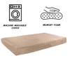 - PRODUCT DETAILS – Materials: Polyester Fabric, Polyurethane Foam, and Memory Foam. Dimensions: (L) 46” x (W) 27” x (H) 4”. The Dog Bed with Washable Cover Supports Dogs Weighing 65-95lbs. Color: Tan.