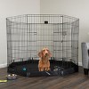 The Playpen by Pet Adobe provides a great enclosure to keep your small pets safe and secure indoors or out. This fencing for dogs has 8 connected 24x42-inch panels to create a spacious play area for puppies, dogs, cats, rabbits, guinea pigs, chinchillas, lizards, or any other appropriately sized pet. The playpen for dogs is made of heavy gauge wire with a black finish for long-lasting protection against the elements, and it's equipped with a secure door with double latches for easy access.
