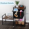 - The dog storage organizer features a storage shelf, a sliding fabric dog toy basket, and a metal wire basket that can be used to store dog toys, treats, pet food, medicine, and other dog accessories.