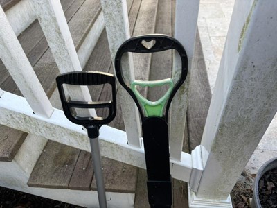 - RELIABLE BUILD - Heavy-duty springs on this poop scoop keep waste in place during the transition from the ground or litter box to your disposal bag. Count on the sturdy aluminum handle and durable, grip-style open-and-close mechanism for reliable use.