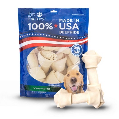 Pet Factory’s handmade braided sticks are made from thick premium American beefhide to satisfy your dog’s urge to chew. Your dog will enjoy the mouthwatering flavor of our braided sticks. These products are manufactured following strict Global Food Safety Initiative standards. Disclaimer: Meant for intermittent usage. Select a chew large enough for your dog and supervise consumption. Discard any small pieces. Coatings are water-soluble but may stain indoor materials.