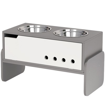 Pet Feeder Station Storage Cabinet, Dog Food Storage Container with Dog Raised Bowls, Watering Supplies