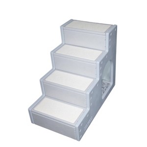 Our new Pet Step 4 with Pet Den allows your pet the ability to get up to your bed or other furniture with ease while adding their new favorite spot to snuggle in. One of our best-selling pet steps now offers the added feature of a den with a removable, washable plush pad. Your pet can access their new cozy pet den through the side entry on the steps. Rubber grippers on the bottom of the steps help keep the unit secure and in place. Assembly is easy, just snap together no tools required and your pet will be using these stairs in minutes.