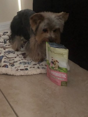 [This review was collected as part of a promotion.] I received the pet naturals probiotic sample to review a few weeks ago. I've been giving them to my dogs for 2 weeks and I can honestly say that they have been going to the bathroom much easier. I will say my dogs are on the smaller size, one is 8 lbs and one is 7 lbs. With them being smaller I have to break them up because of the recommended serving size per weight breakdown. Other than that, they seem to stay fresh in the container and my dogs have no resistance to taking them.