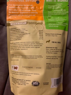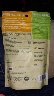 [This review was collected as part of a promotion.] I give this to my 3 leg lab. I feel like she needs extra hip support since she is missing her back leg. She isnt super excited to eat it, so they must not be the best in flavor because she isnt usually picky. Its honestly hard to tell a super big difference when you give this sort of thing but i just hope im doing whats best for her. Pet Naturals is a very trusted brand in my home of 4 dogs.