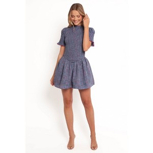 Step into the spotlight with the Celine Mini Dress in navy plaid, where playful elegance meets effortless style. This charming dress features a mini length and a high round neckline, perfect for adding a touch of sophistication to any occasion.