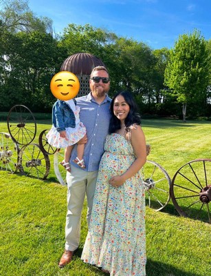 I would have given it 5 stars if it wasn’t so shapeless and long. I feel like on a taller person it would be perfect. But for someone who is 5’3, there was a lot of length! I kept tripping over the bottom of the dress and a lot of people kept stepping on it. Also, not ideal if you are chasing around a toddler! But! A lot of people did give me compliments on how much they loved my dress. I also added a very thin elastic band around the bottom of my chest/boobs to give it more shape and to accentuate my baby bump. I ordered my pre-pregnancy size M. I probably could have gone for a small but then I think the chest area would have been a tight fit. For reference I am 24 weeks and 147 lbs and size 36DD. I am definitely going to hem the dress because it’s so cute I’d want to wear it again! You could really dress it up or down and it really is comfortable!