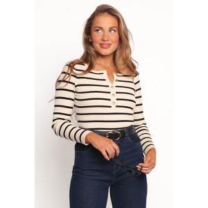 Elevate your everyday wardrobe with the Deni Henley Bodysuit in Stripe, a versatile essential made for effortless style and endless layering options. Crafted from a soft, stretch ribbed knit, this bodysuit combines comfort and a sleek silhouette that hugs your curves just right.