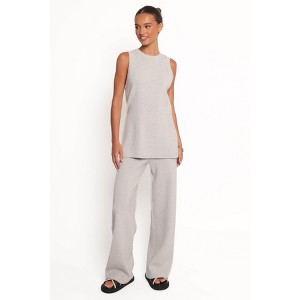 Crafted from a stretch ribbed fabric, this set feels like a dream while keeping you perfectly on-trend. The sleeveless top boasts a classic neckline and side split detail for an added touch of edge, while the high-waisted pants feature a comfortable elasticized waistband and relaxed wide-leg.