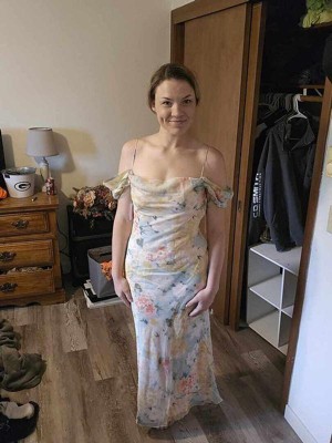 [This review was collected as part of a promotion.] The amount of people who asked me for the link to this dress was insane, so many compliments and SO beautiful for this spring wedding! Not white at all for anyone wondering! The pastels and the fit were perfect! Large bust friendly!