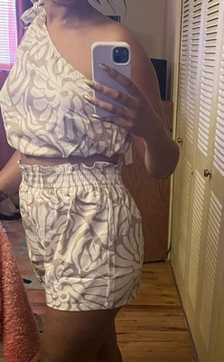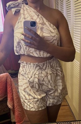 [This review was collected as part of a promotion.] Wearing this outfit makes me feel like Tarzana. I love the pattern, color, fabric, length and fit of the shorts. I have a pear shape so I the top is way too big but if you tie up the bow tighter it will look better but not as fitted as I’d like it to be. Would be great to be able to mix and match top/bottom sizes. Not all of us come in perfect proportions like the models. It would have otherwise been perfect if there was an option to mix and match sizing so I could feel more comfortable in this outfit.