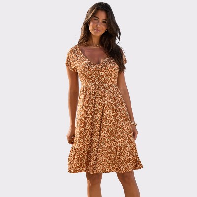 The dress is cute and good quality, just looks a little more orange than brown.