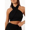 This set boasts a flattering halter neck style cropped top with a tie close design and back shirred panel for a perfect fit. Paired with high-waisted, elastic-waist pants, this ensemble ensures comfort without compromising style.