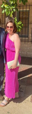 [This review was collected as part of a promotion.] After trying three other pink dresses for a wedding that were okay but nowhere near the vision, I found this as a last ditch effort to find something phenomenal. Luckily, it was everything I had dreamed of and more for the colorful, fun dress code of my friend's wedding! This dress hangs beautifully, the fabric is heavy and good quality, the waist line and one shoulder detail is amazing, and the color?! Perfect!