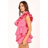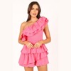 Make a statement in this stunning one shoulder romper! Featuring a beautiful tiered ruffle feature, this above-the-knee length design is perfect for any special event.