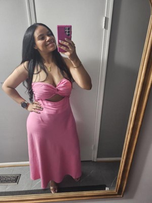 Our Rosetta maxi length dress is perfect for your next party. Boasting a strapless sweetheart neckline and curve-hugging fit, it's sure to make you look amazing. There's also a twist knot detail on the bust and a cut out feature under the bust for added style points.