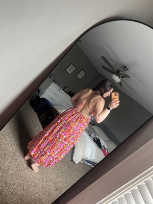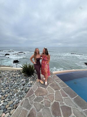 LOVE LOVE! Attended a wedding in Mexico and this dress was perfect for the night before drinks! Fit very well. I’m usually a size 6-8, Medium. I went with size 8 since dresses I usually size up. Definitely could have worn a size 6. It was confusing to tie at first and the tiny stitching is very delicate. Had to bring an emergency sewing kit since it did come undone slightly, it was an easy fix though. It helped to have someone help with tie it. I got so many compliments on this dress the whole night!