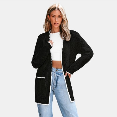 This stretch knit cardigan is the perfect way to add a touch to any outfit! Featuring long sleeves and a wide collar, it's perfect for adding just the right amount of coverage. The waist tie gives you an adjustable fit that flatters your figure, while the waterfall style front adds an elegant touch.