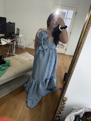 [This review was collected as part of a promotion.] Bought this dress for my maid of honor and it’s perfect! a beautiful shade of blue with the statement bow + comfortably fitting — she loves it!