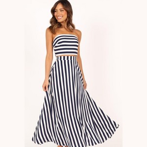 [This review was collected as part of a promotion.] I’m in between a small and medium and went with a medium. While the waist of the skirt fit great, the top was a bit too big. I probably could have made it work with a strapless bra. Nonetheless, the stripes were a lot… just a little too much.