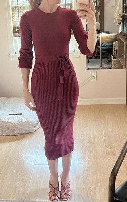[This review was collected as part of a promotion.] This dress is so comfortable and flattering! I love the mid calf length for winter parties. I felt confident in this dress all night and feel like it’s a staple piece. True to size.