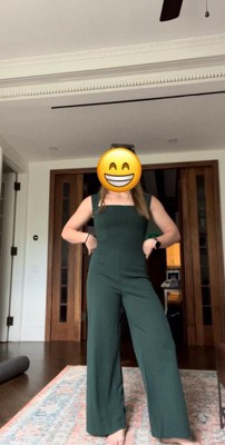 [This review was collected as part of a promotion.] Pretty jumpsuit, green is lighter thank in picture, runs a little small.