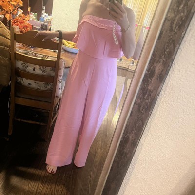 I loved the pink color in this jumpsuit! It is super lightweight and cool for summer and a little sexy because it is strapless. I chose to wear mine with a strapless bra. However, the one downside is the material creases super easily so you would probably have to steam it after wearing it.