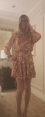I love this dress! Great fit, the sleeves are too short for me, but I just push them up. Ver happy with this dress
