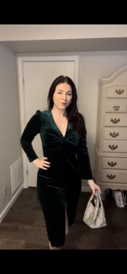 Petal and Pup Lisse Twist Front Long Sleeve Velvet Midi Dress - Emerald XS