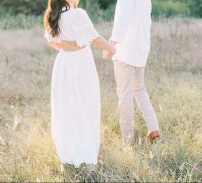 [This review was collected as part of a promotion.] It's a beautiful white dress the details the quality it's just a gorgeous dress in love with it
