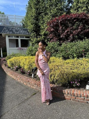 Honestly I was initially hesitant at first when I tried this on but after styling it with my hair up and cute heels, this dress was so gorgeous. I wore it to a wedding and got SO many compliments on it. The halter/high neck was great and kept me cool on a hot day. I’m typically between a small and medium and the small was great