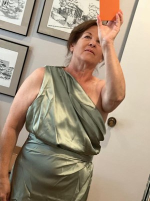 Ordered a bunch of dresses to be tried on in search of a dress to wear for a black tie wedding. I actually liked this one a lot and the quality of the fabric was great. It was elegant. Now for the cons. I’m 22 weeks pregnant and have a small bump so I needed something to accommodate that. This almost fit the bill but the slit on the side - not sure if it had to do with the way the dress pulled with the bump, but one wrong move and I would’ve flashed the world. And a quick fix at alterations wouldn’t have helped because then the dress would’ve been too constricted. If the slit hadn’t been so high I would’ve kept it. Ended up going with a more forgiving dress.
