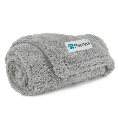 PetAmi Cooling Dog Blanket, Lightweight Reversible Fluffy Fuzzy Pet Throw Furniture Bed Couch Sofa Cover Protector Light Grey, Medium 29x40
