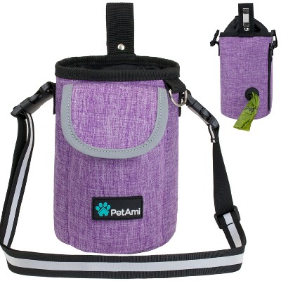 PetAmi Dog Treat Pouch, Pet Training Walking Bag Holder for Kibbles Food Toy, Trainer Essentials Supplies with Waste Dispenser (Heather Purple)