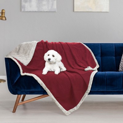 PetAmi Waterproof Dog Blanket for Bed Couch Sofa Cover, Reversible Faux Shearling Fleece Pet Throw (Dark Red, Large 60 x 40 Inches)
