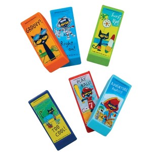 Gear up for school with these fun and functional Pete the Cat Beveled Erasers (6 Pack)! Featuring a variety of groovy designs and sayings from the beloved Pete the Cat series, these erasers are perfect for kids who love to add a touch of personality to their school supplies.