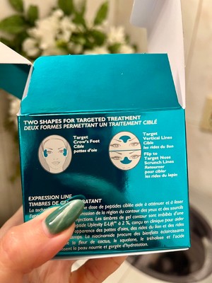 Unfortunately, these did not show any immediate results as advertised. The eye patches were a bit big and didn't smooth on well. The 11s patch was perfect. They moistured where they were but had no instant smoothing effect for me. My crows feet and 11 lines look the same. I used for about a week.