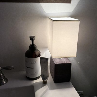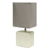 Clean and modern, this simple 11.81" table lamp features a square faux stone base crafted from ceramic. The crisp, soft fabric shade adds a gentle touch to the textured base. The lamp’s industrial style gives it a very modern look. Perfect for bedrooms, entryways, kids and teens, college dorms, nurseries, or offices!