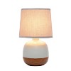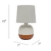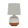 What better way to combine classic favorites with today's trendy decor? Textures, prints, and more! A rounded ceramic base is enhanced by a strip of wooden print across the lower portion of the base. With a fabric shade finalizing the look, we're sure this 12" piece will not only illuminate your space, but definitely integrate some modern vibes in your room of choice as well.