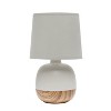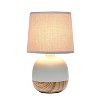 What better way to combine classic favorites with today's trendy decor? Textures, prints, and more! A rounded ceramic base is enhanced by a strip of wooden print across the lower portion of the base. With a fabric shade finalizing the look, we're sure this 12" piece will not only illuminate your space, but definitely integrate some modern vibes in your room of choice as well.